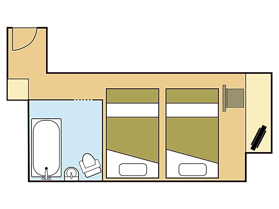 The twin room offers air conditioning, soundproof walls, as well as a private bathroom featuring a bath and a shower. The twin room provides an electric kettle, a carpeted floor, pajamas and a flat-screen TV. The unit offers 2 beds.